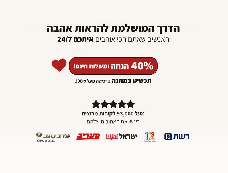 כבר פעם שניה שאני קונה והכל מגיע פשוט מהמם, השירות מצויין והרעיון מרגש ומפתיע כל פעם מחדש, הגיע הזמן לפרגן תודה לכם!!