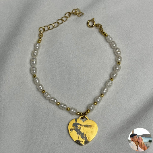 שרשרת לב עם חריטה אישית בצירוף פנינה טבעית