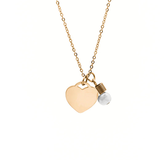 • שרשרת לב עם חריטה אישית בצירוף פנינה טבעית